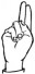 На ћирилици написано КОНСТАНТИН РУЧНОВ састоји се из 16 слова [?]. Исписано ћириличном једноручном азбуком за глувонеме: